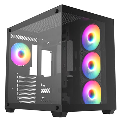CRONUS Pallas Case, Gaming, Black, Mid Tower, 1 x USB 3.0 / 2 x USB 2.0, Tempered Glass Front & Side Window Panels, RGB LED Fans, ATX, Micro ATX, Mini-ITX, Stealth Motherboard Compatible
