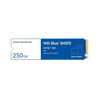 WD Blue SN570 (WDS250G3B0C) 250GB NVMe SSD, M.2 Interface, PCIe Gen3, 2280, Read 3300MB/s, Write 1200MB/s, 5 Year Warranty